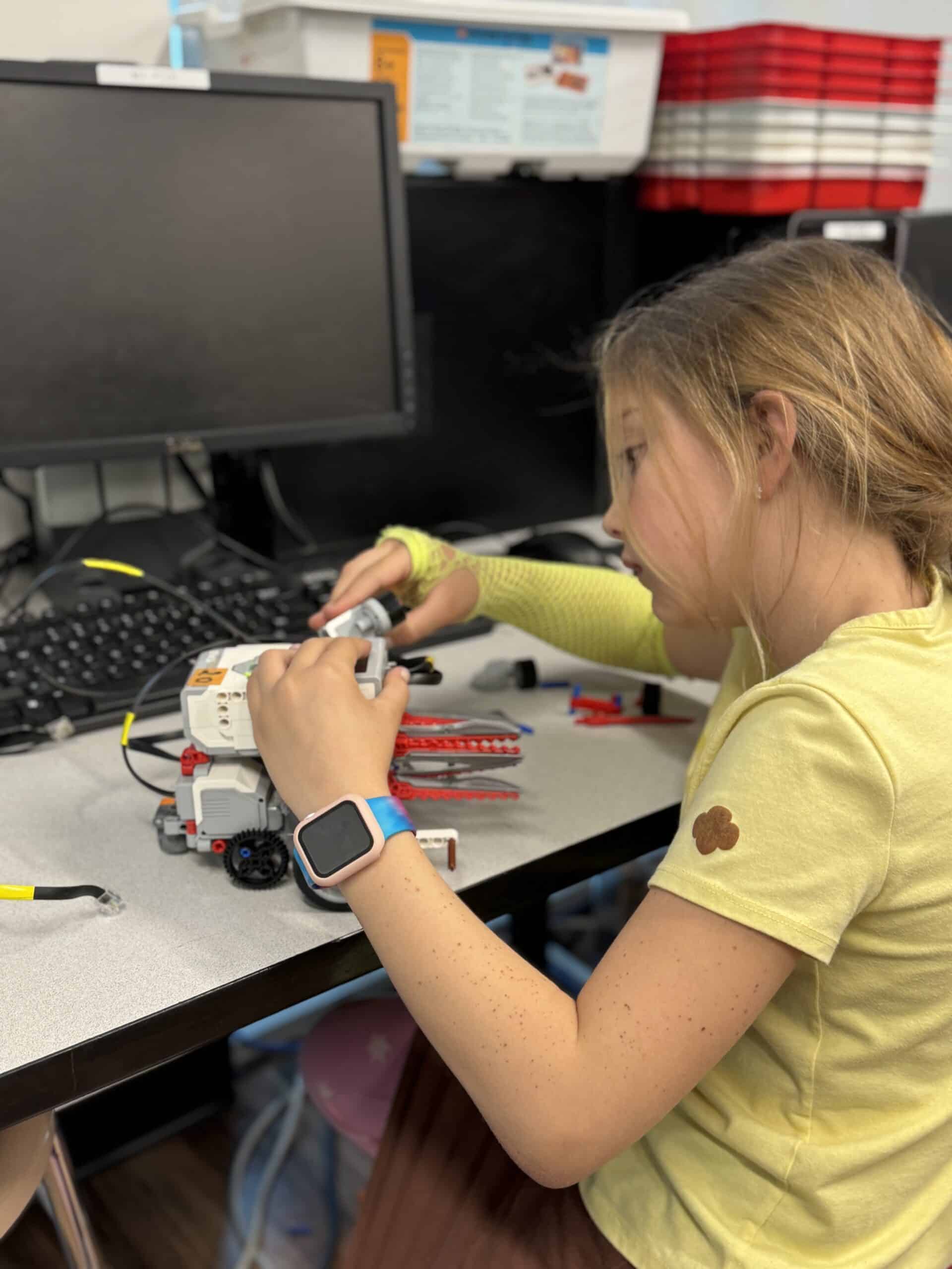 We use real competition-style robotics equipment, and many students go on to prepare for FLL and FTC teams.
